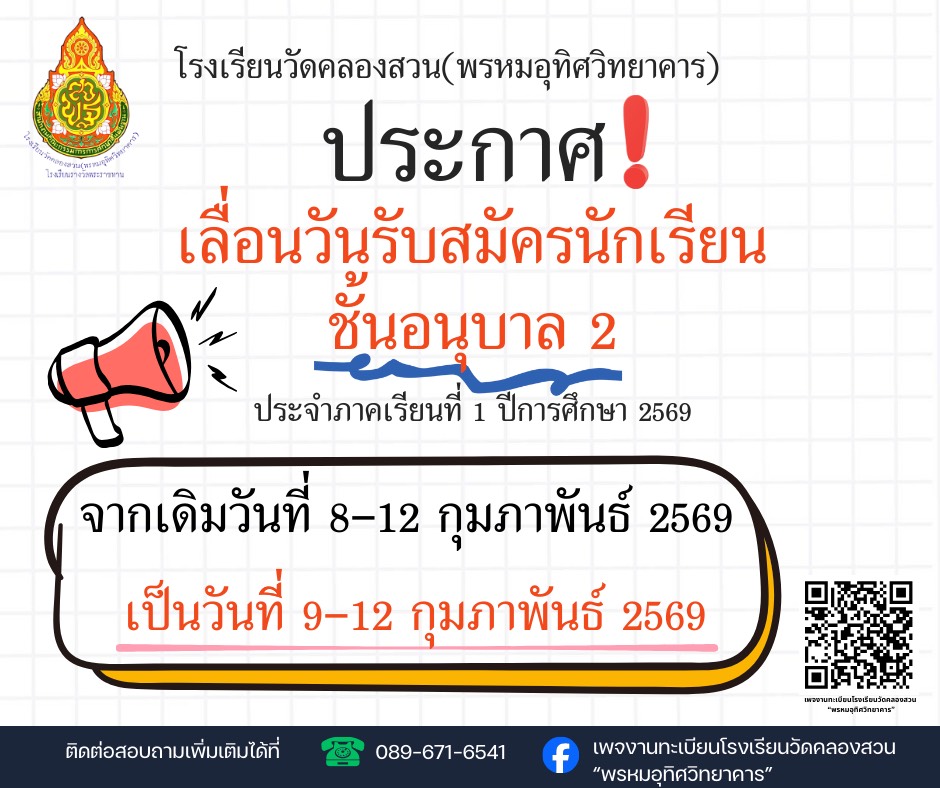 ยินดีต้อนรับสู่โรงเรียนวัดคลองสวน(พรหมอุทิศวิทยาคาร)